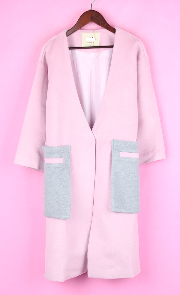徐08 V领拼色长袖 113SS010女式 开衫 长大衣外套 春秋季