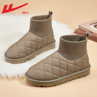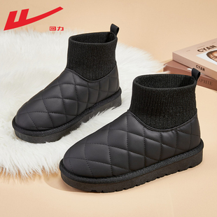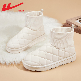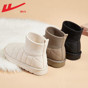 女 加绒加厚袜子靴黑色皮面菠萝包棉鞋 回力雪地靴女冬季 2024年新款