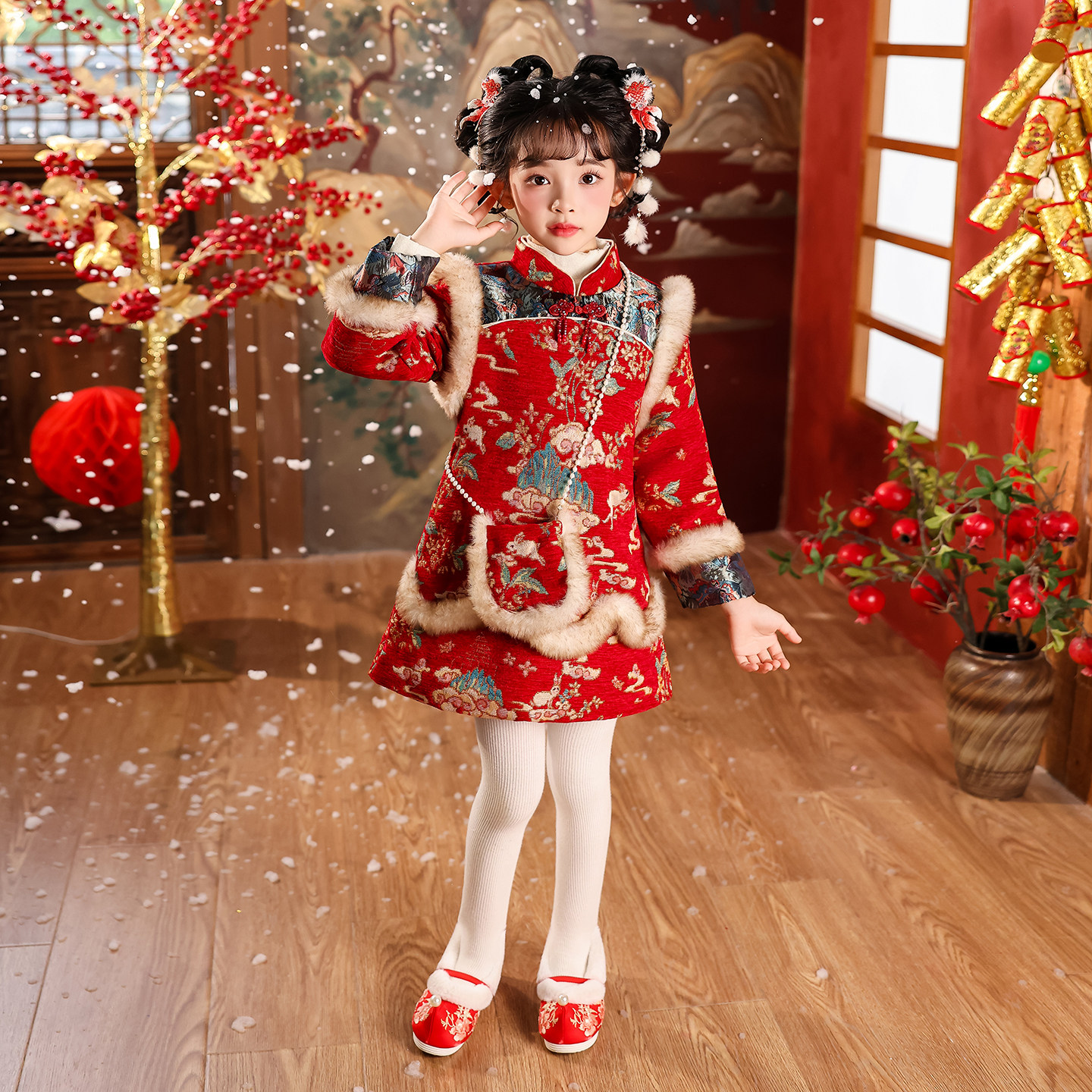 连衣裙收腰显瘦11 新中式 少女长款 加绒加厚年轻款 奥黛旗袍冬季