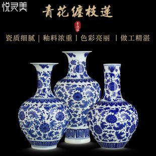 中式 饰品摆设 客厅青花陶瓷花瓶景德镇瓷器工艺品玄关博古架酒柜装