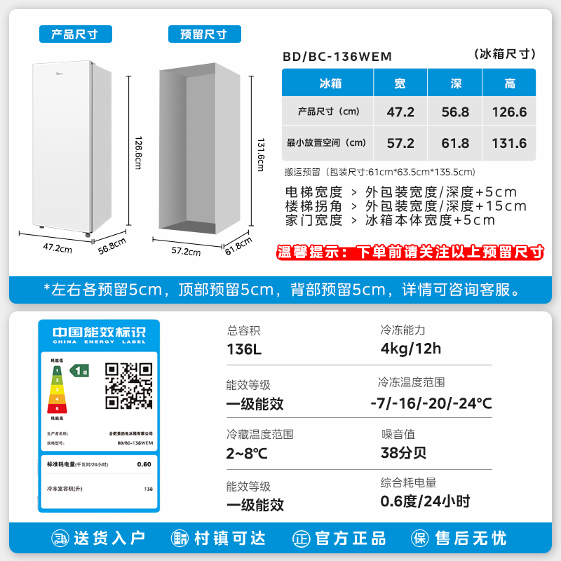 商品标签:136L立式