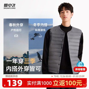 雪中飞25冬新款 圆领轻薄羽绒背心马甲户外百搭保暖 男女短款