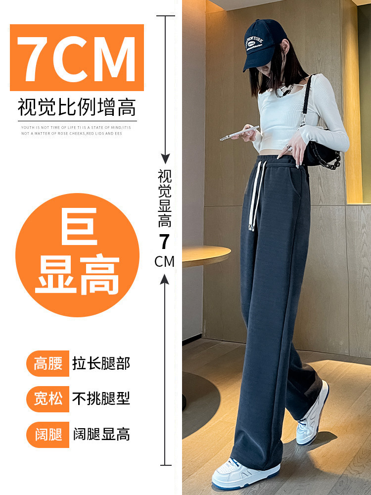 高腰垂感欧棉糯米休闲裤 韩国灰色窄版 直筒裤 女秋冬2025新款 阔腿裤