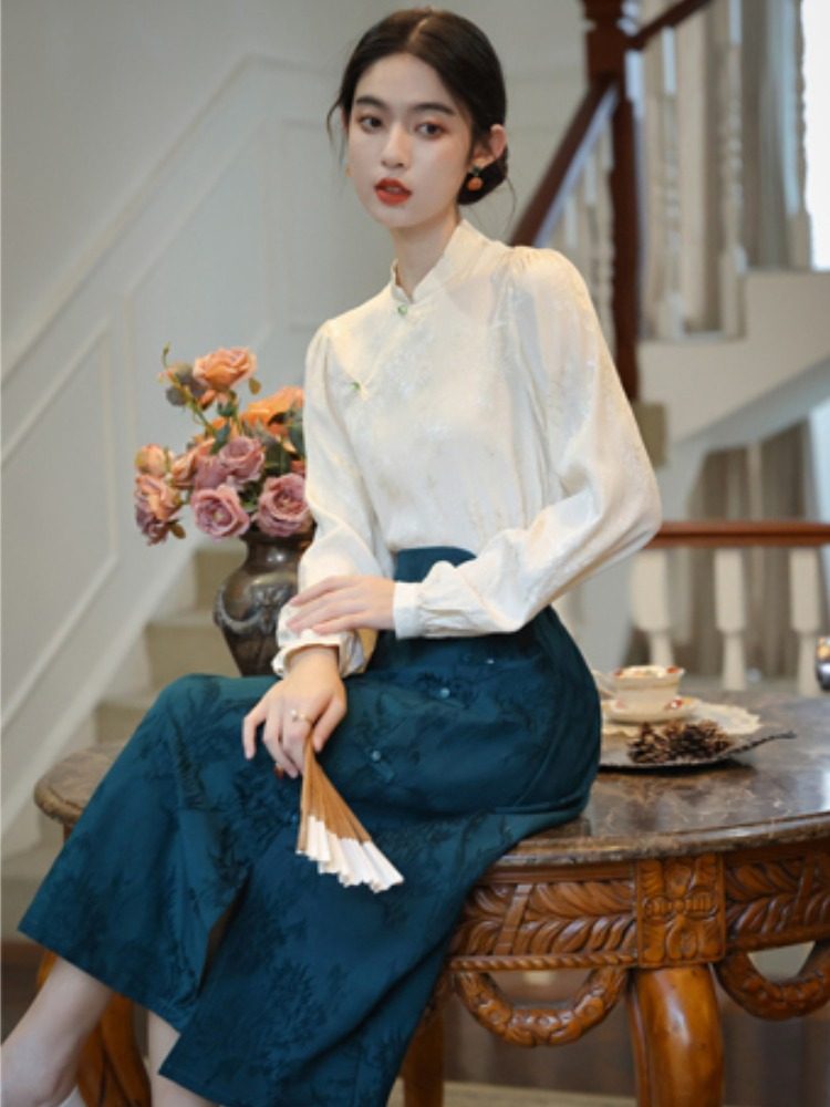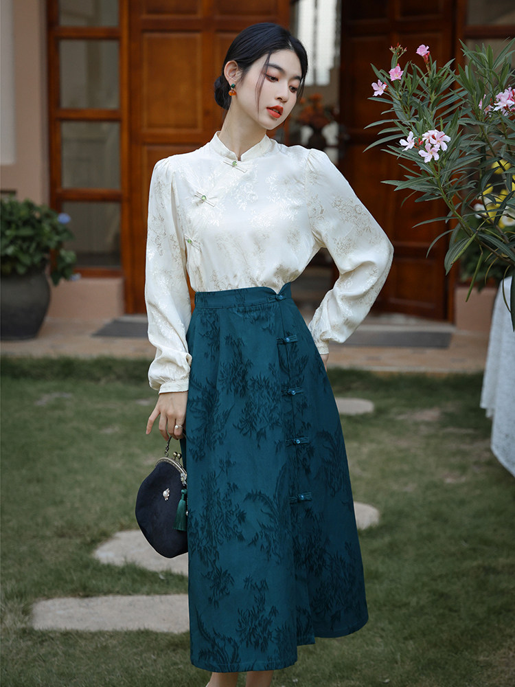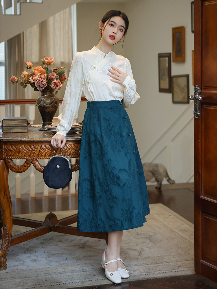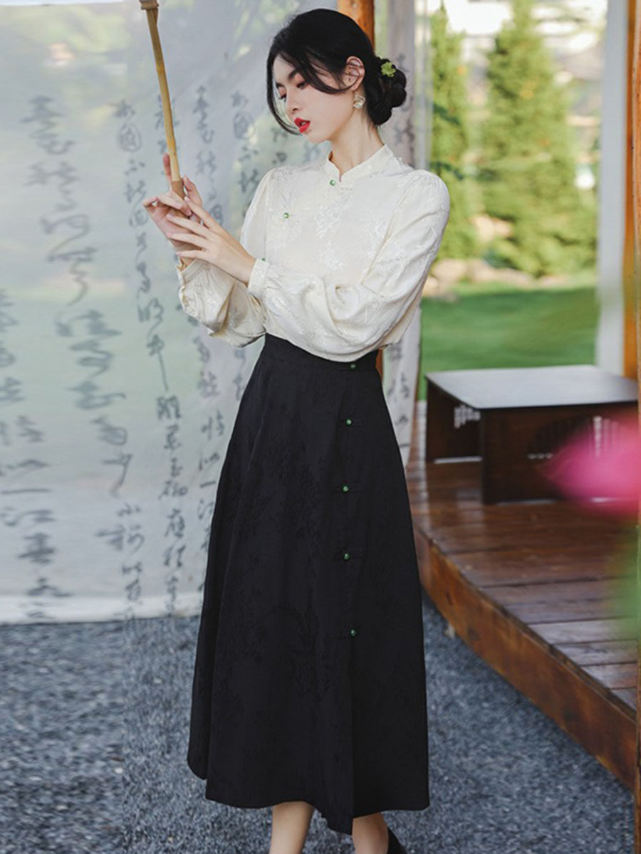 JAMUUS复古羊羔毛皮毛一体翻领外套麂皮绒保暖上衣 毛呢半身裙