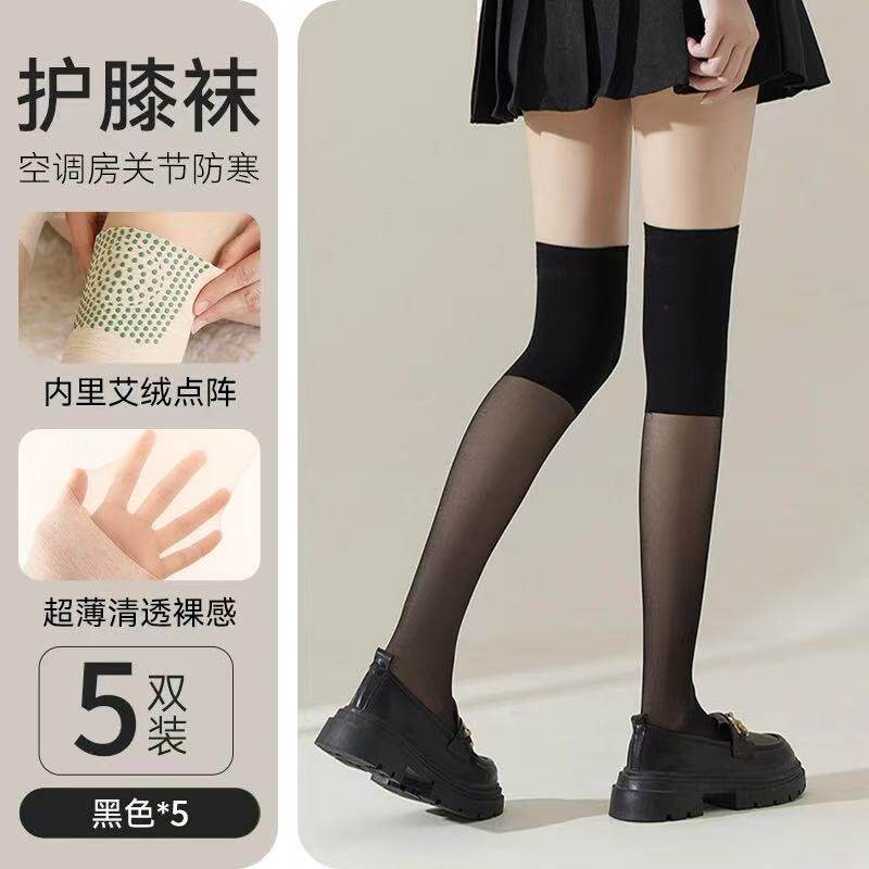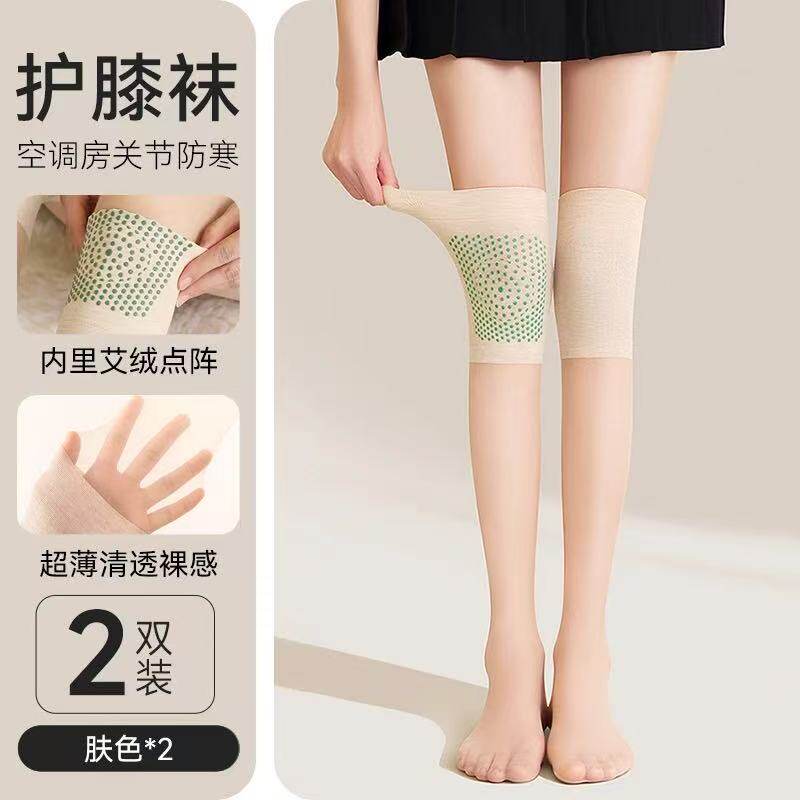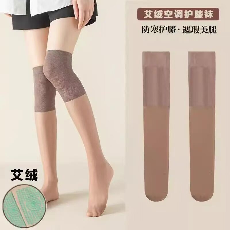 雅鹿妈妈神器艾绒护膝袜女夏季 空调袜拼接长筒丝袜寒腿长袜 薄款