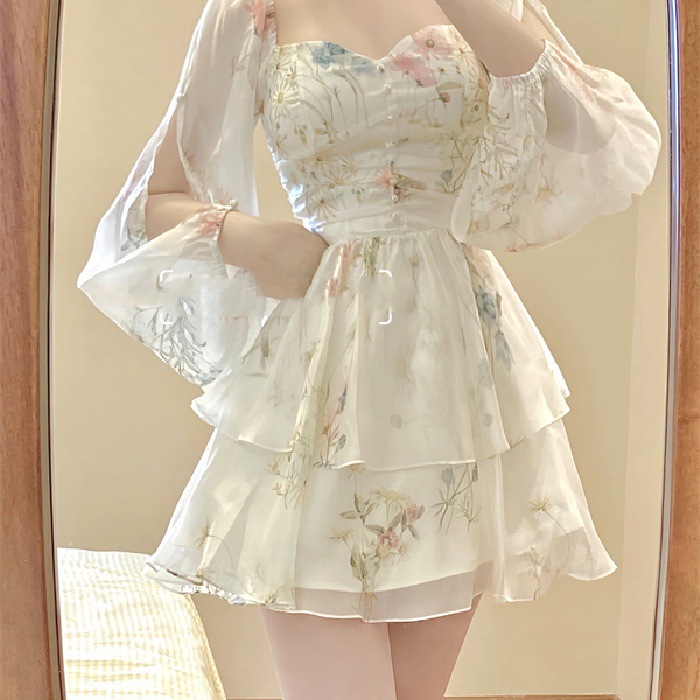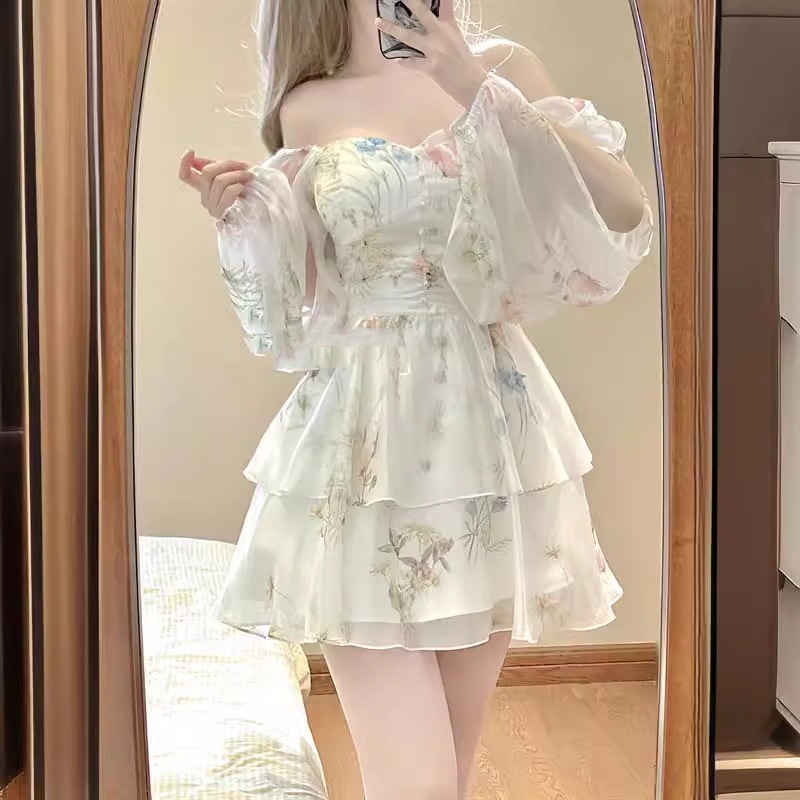 大码 女装 伪娘变装 连衣裙性感时尚 大佬男娘碎花短裙纯欲风 法式 新款