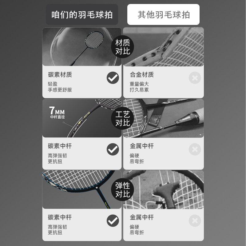 碳素羽毛球拍正品 旗舰店官方全碳纤维超轻耐用型专业单双拍套装