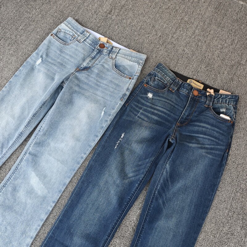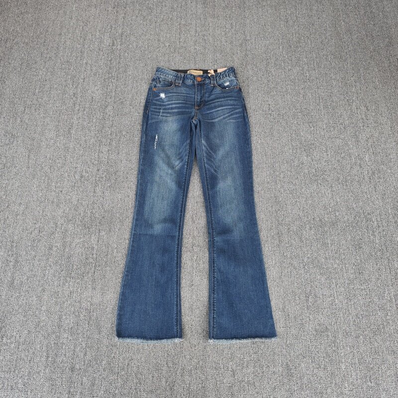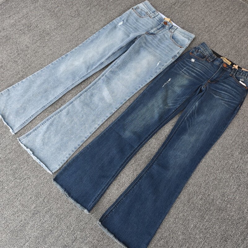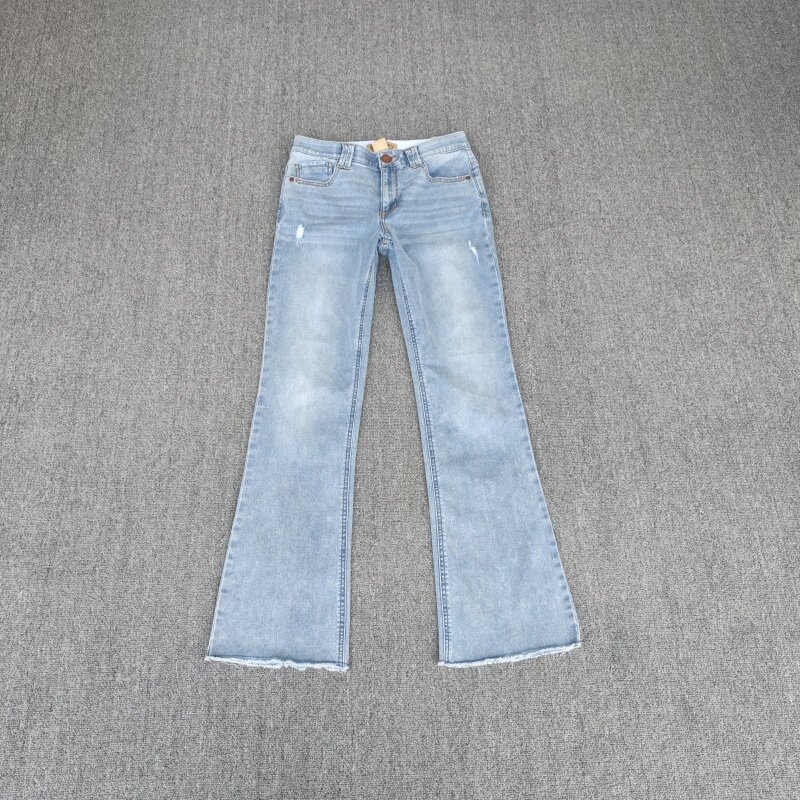 毛边女裤 弹力猫须纹口袋磨破水洗微喇提臀大码 牛仔裤 欧美春秋款