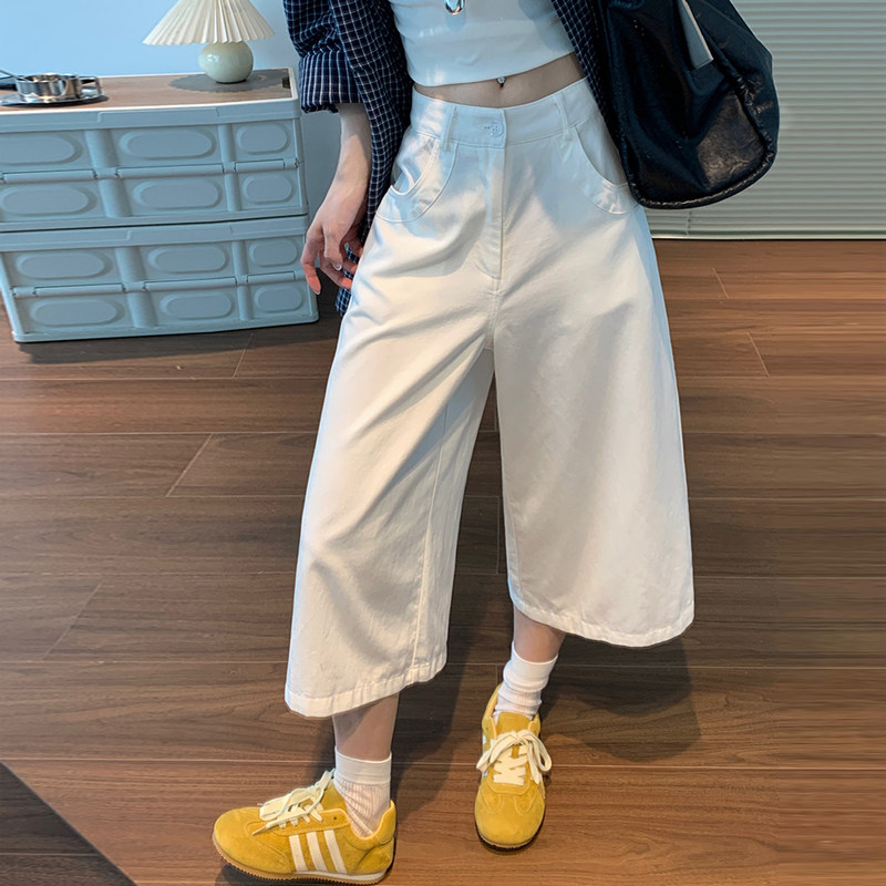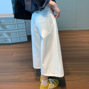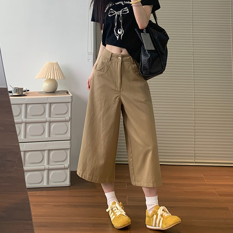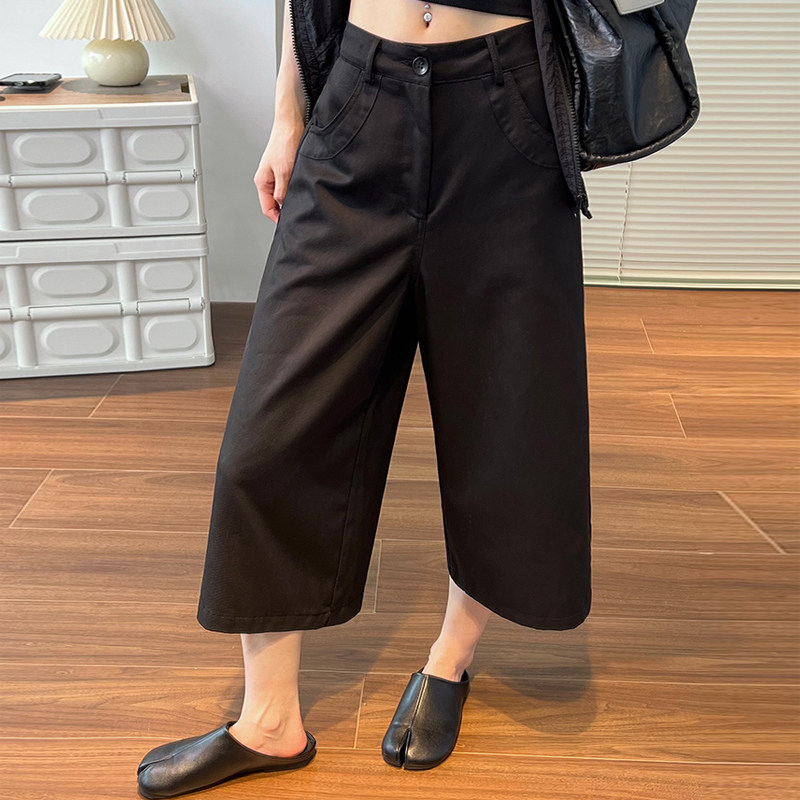 八分中裤 宽松显瘦天丝棉休闲阔腿裤 女夏季 黑色直筒七分水洗牛仔裤