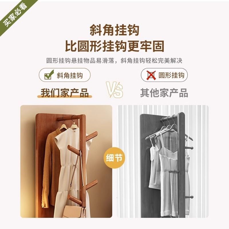 实木可旋转全身镜家用二合一挂衣架穿衣镜简约多功能衣帽架试衣镜