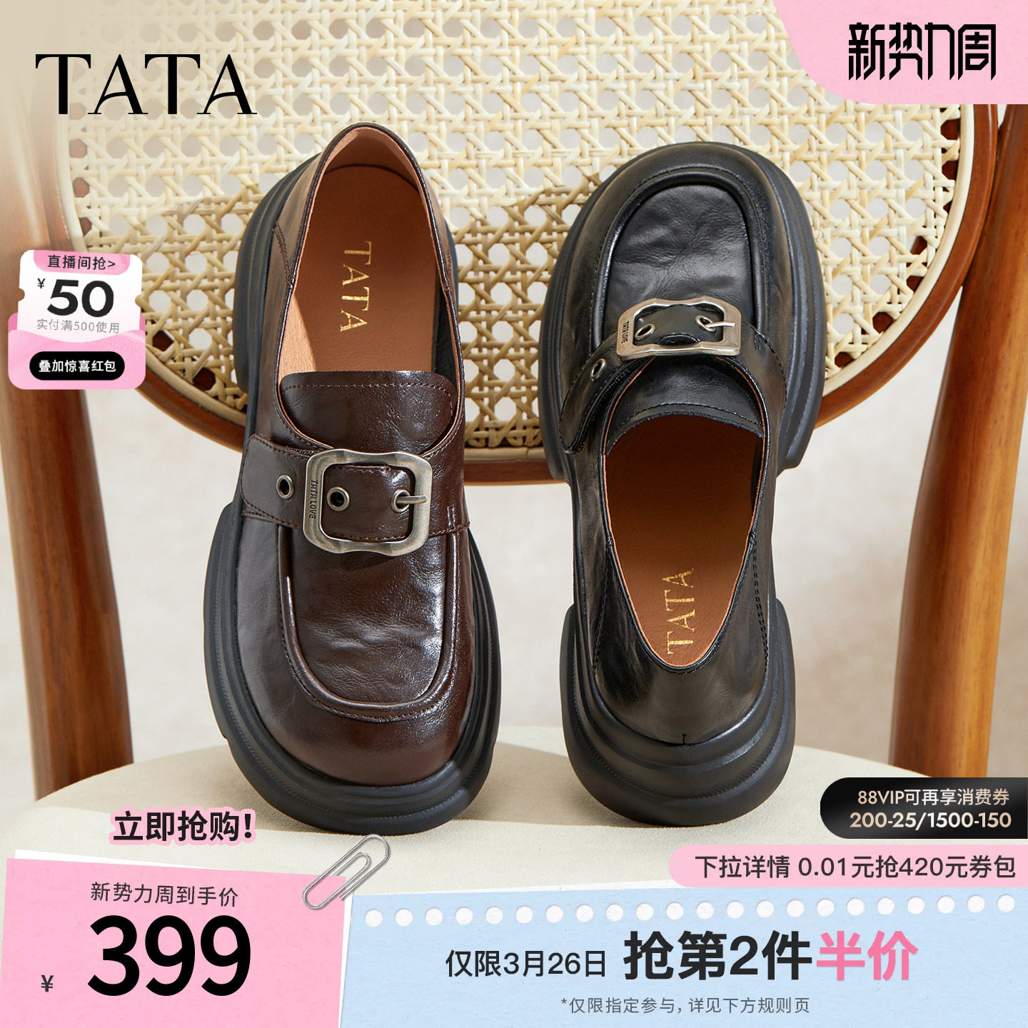 女单鞋 百思图26春新款 英伦豆豆鞋 miu系乐福鞋 UXE01AA6 绒面羊皮鞋