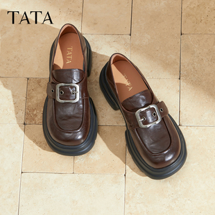 棕色乐福鞋 女鞋 豆豆鞋 一脚蹬单鞋 A9125AA6 平底鞋 思加图2026新款