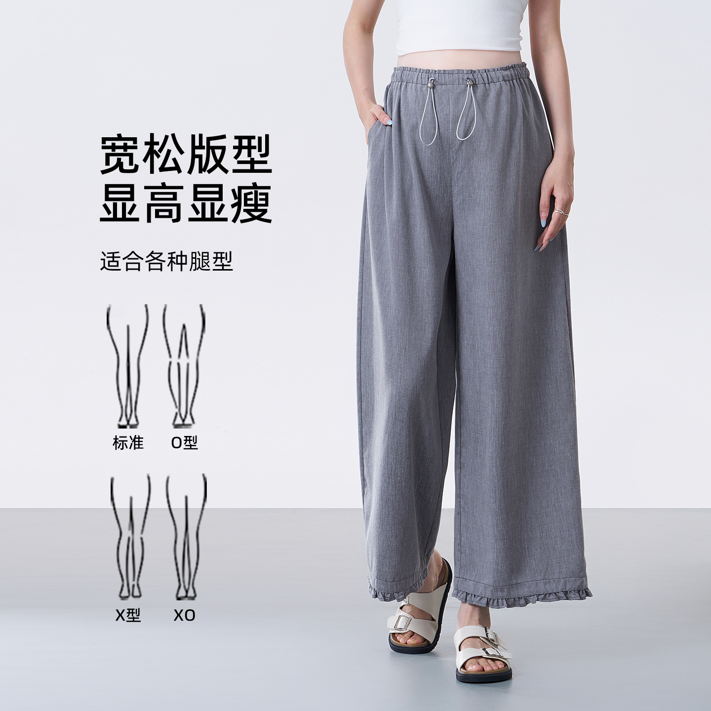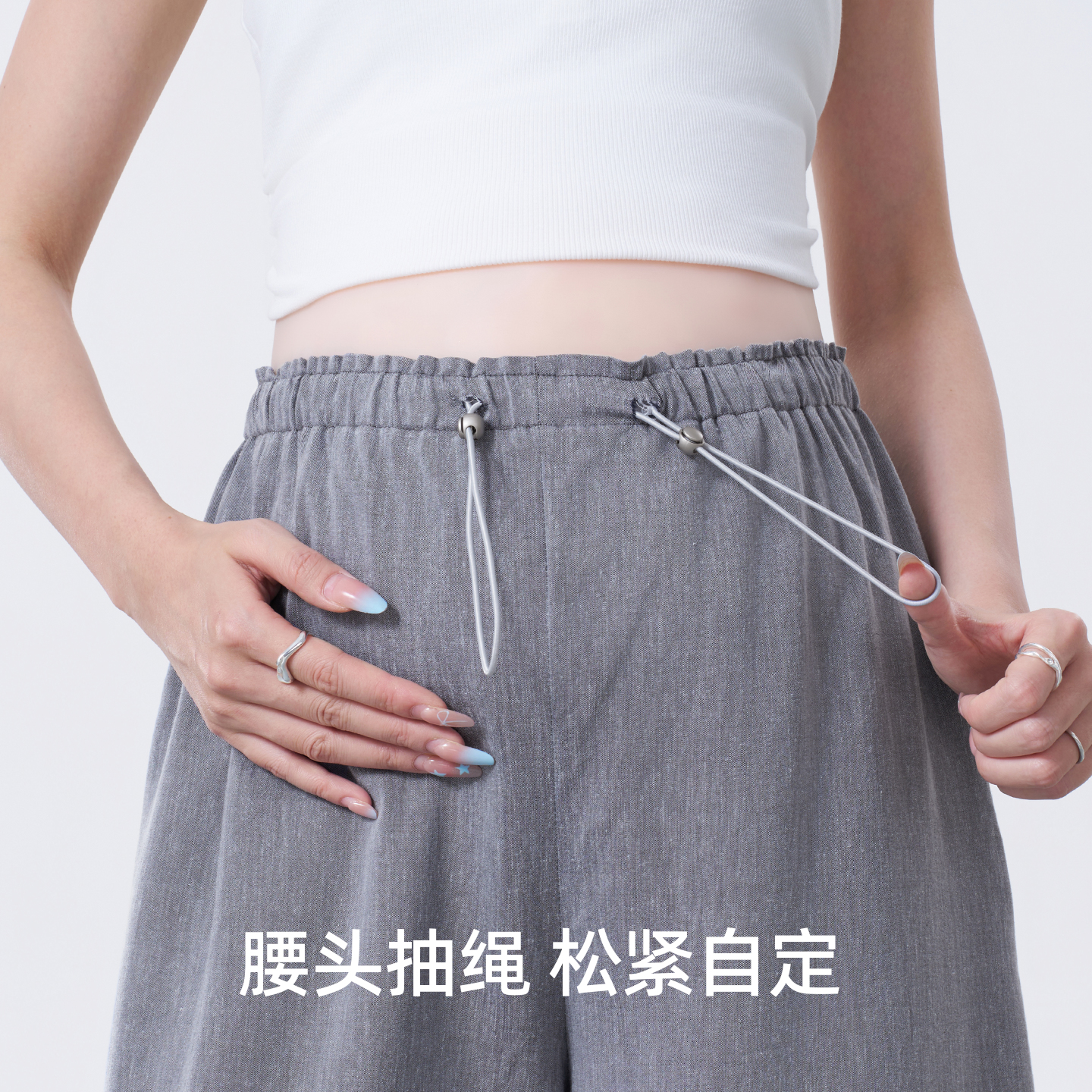 子夏季 夏装 薄款 潮妈孕期穿搭2025新款 外穿 小个子亚麻阔腿裤 孕妇裤