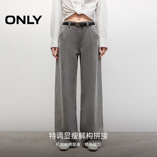 牛仔裤 莱赛尔垂感做旧腰带高腰宽松直筒长裤 女 新款 ONLY2026春季