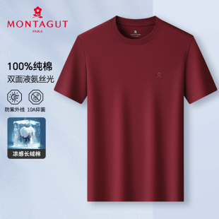 100%丝光棉 T恤短袖 液氨科技 男士 圆领纯棉抑菌体恤J 梦特娇夏季