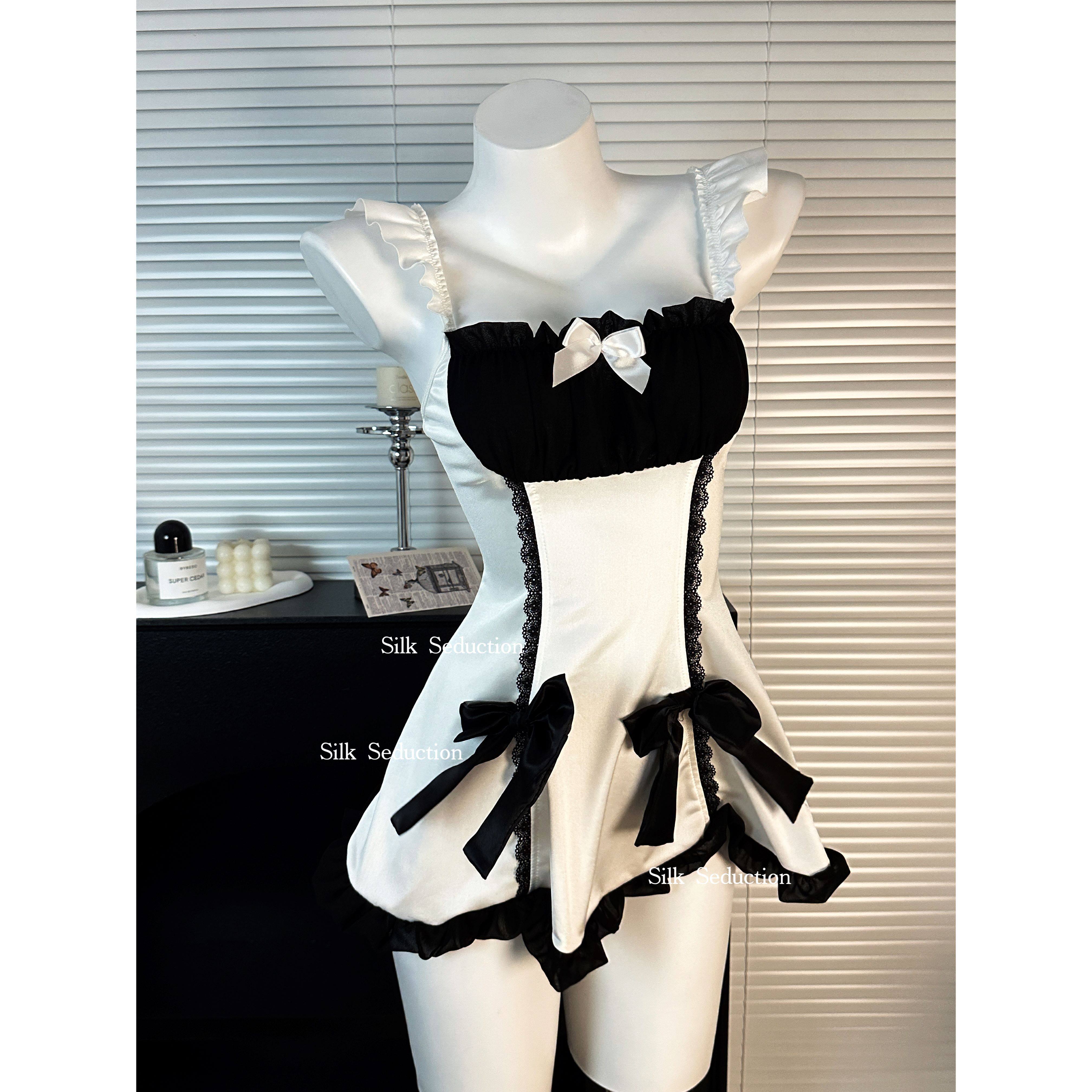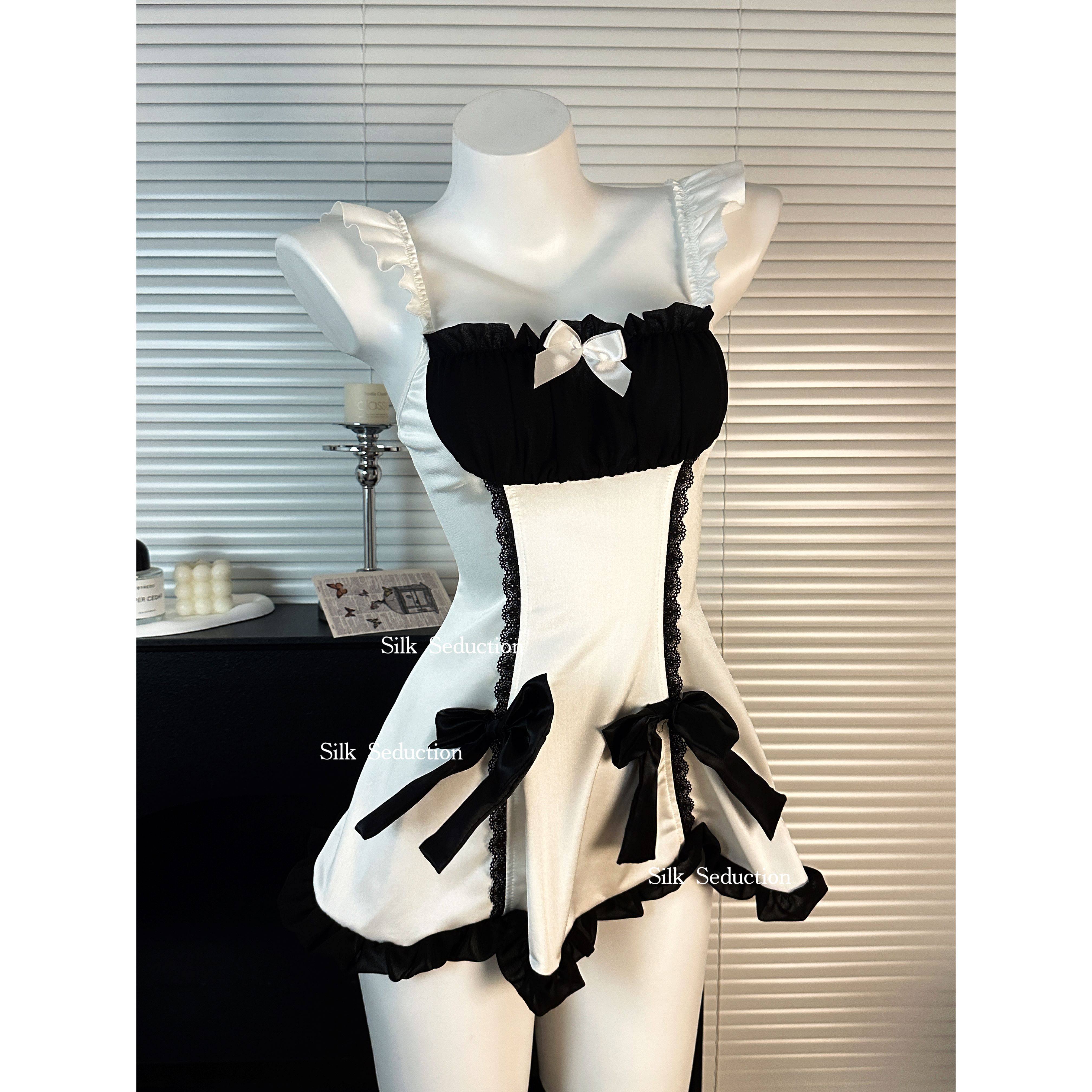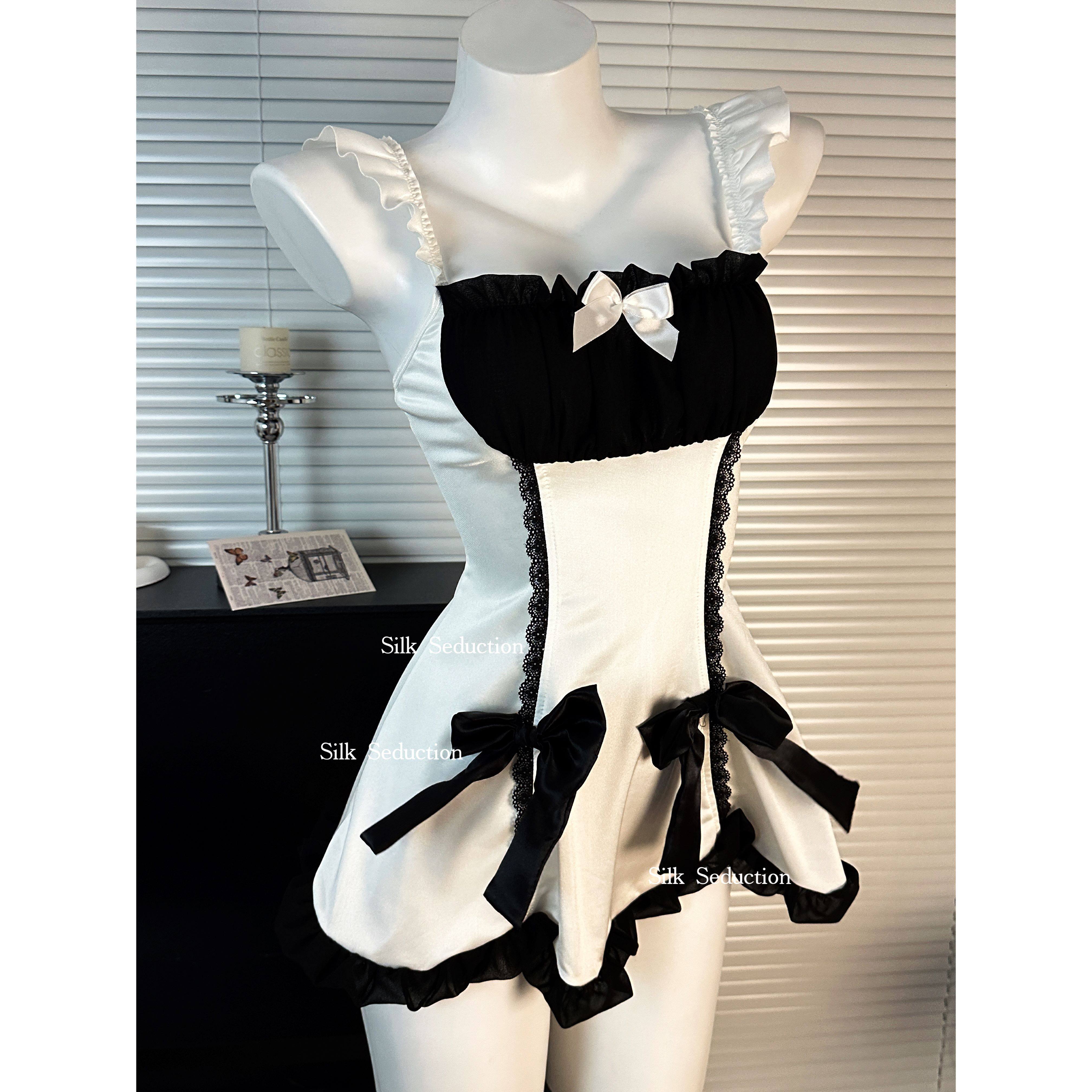 今夕何夕性感睡衣女秋冬季 蕾丝纯欲风带胸垫冰丝吊带睡裙 2025新款