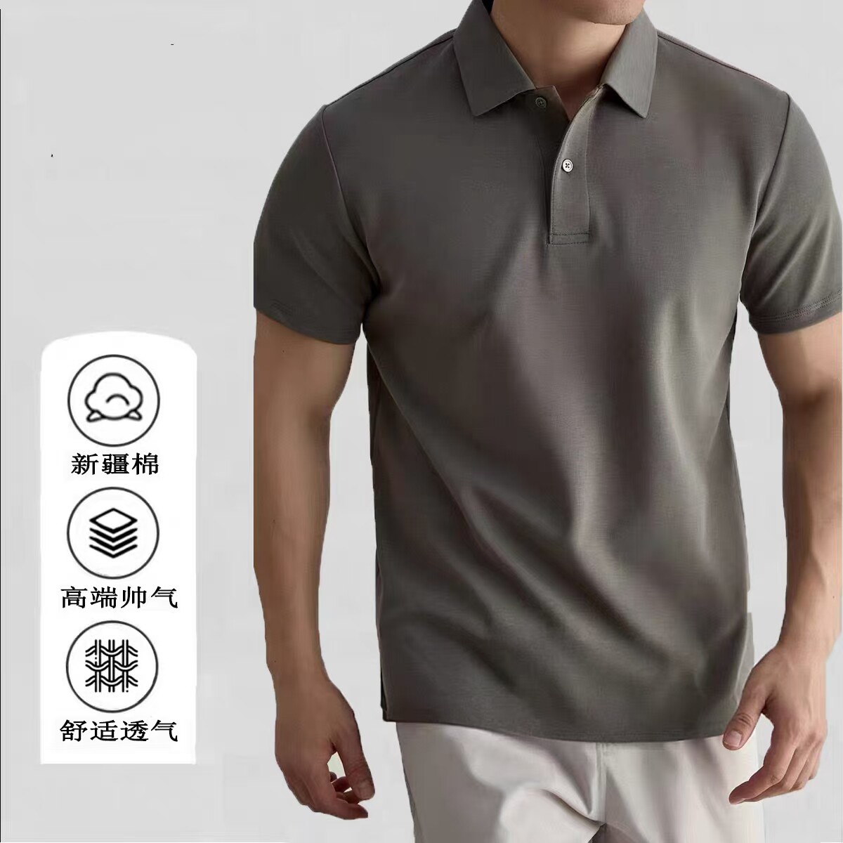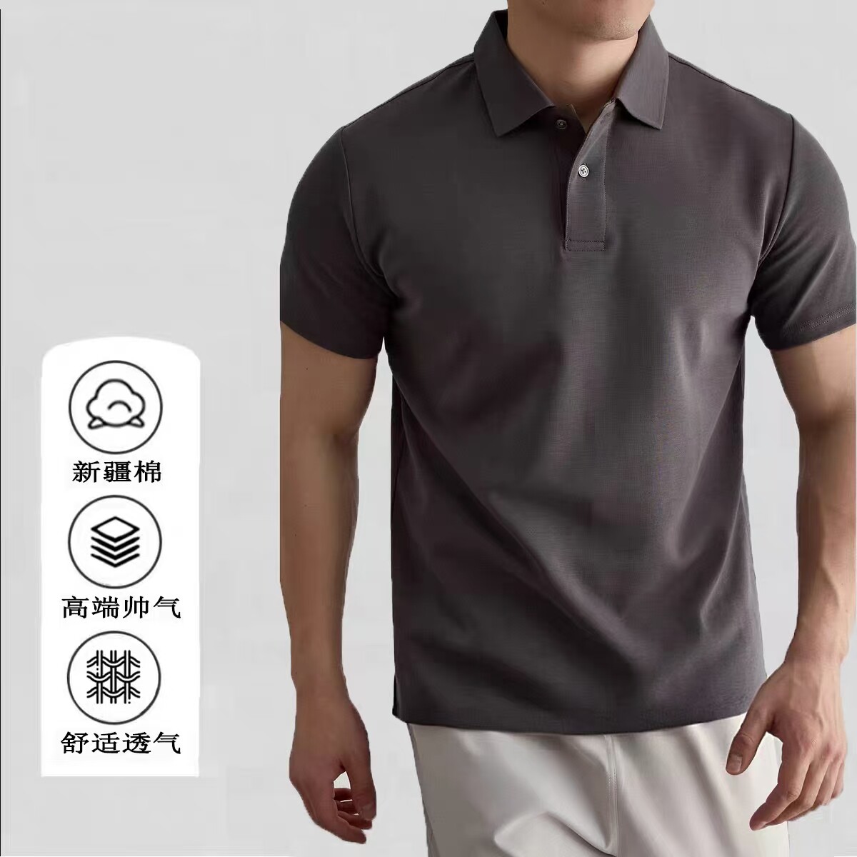 短袖 polo衫 透气t恤高端商务垂感男式 优质新疆棉纯色无痕领polo衫