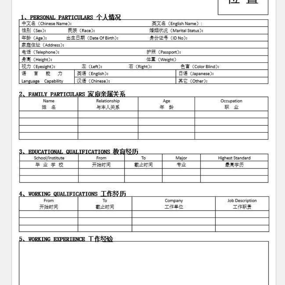 个人简历模板wor电子版 空白表格求d职表简单简约面试标准简历