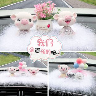 汽车饰品摆件摇头小猪车载车内网红可爱创意高档车上装 饰用品女神