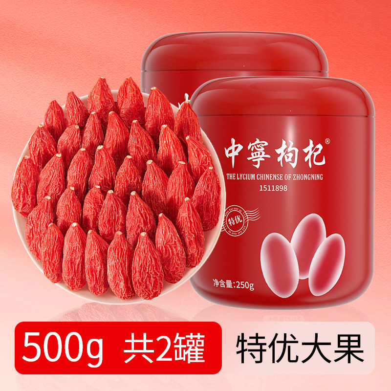 宁夏正宗特级免洗枸杞宁夏特一级枸杞子泡水喝泡酒500g罐装 含罐