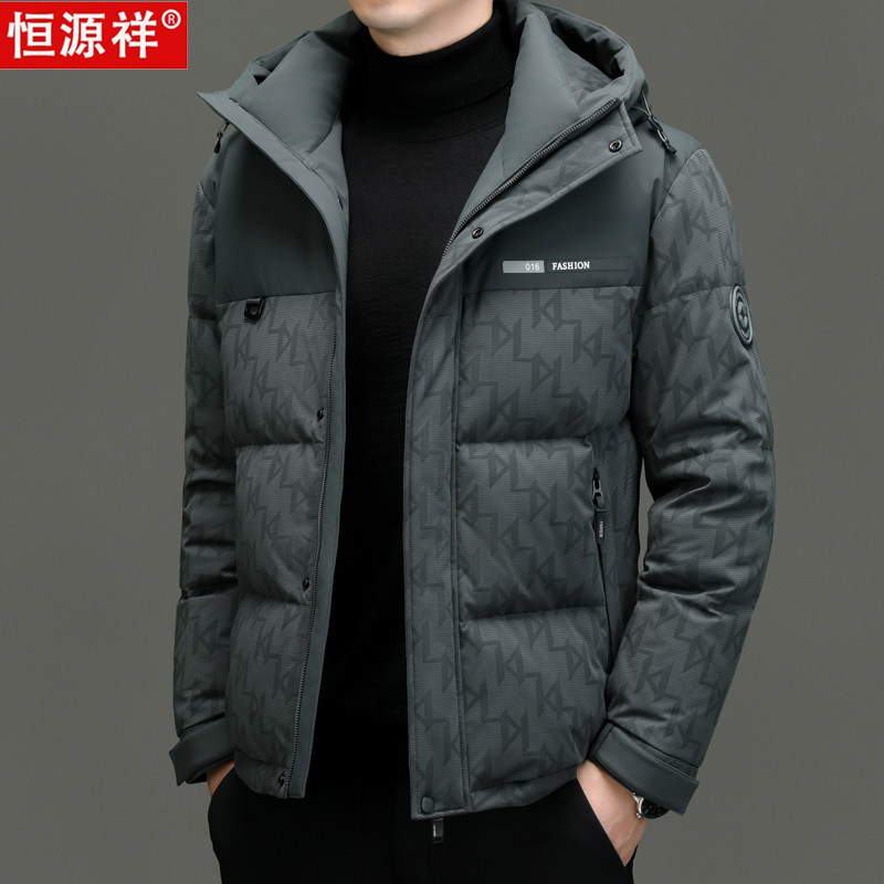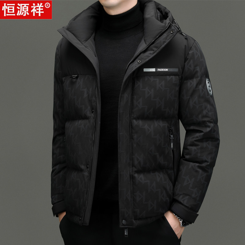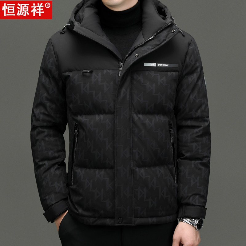 外套 加厚御寒保暖白鸭绒男装 恒源祥拼接羽绒服男连帽冬季 休闲男款