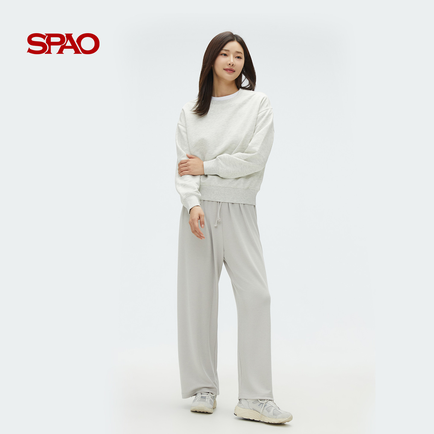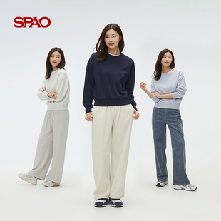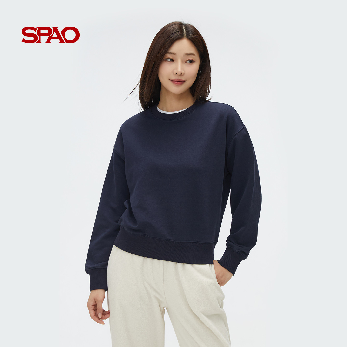 SPAO韩国同款 25年春秋女士日常通勤基础简约纯色套头廓形圆领卫衣