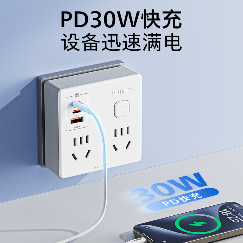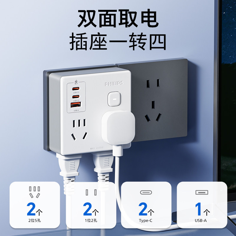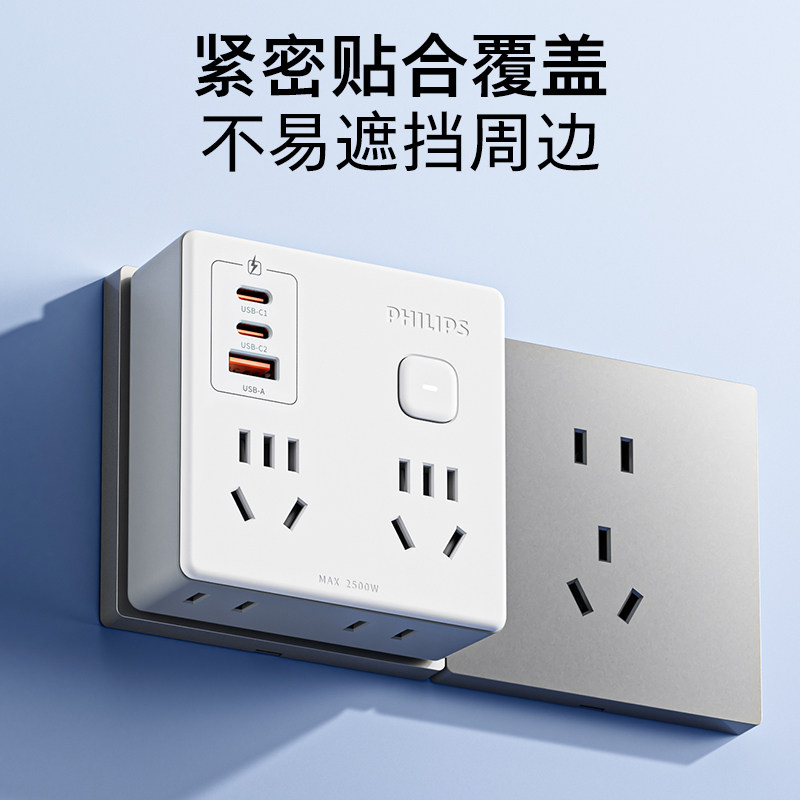 会员精选飞利浦魔方插座一转三转换器扩展插头