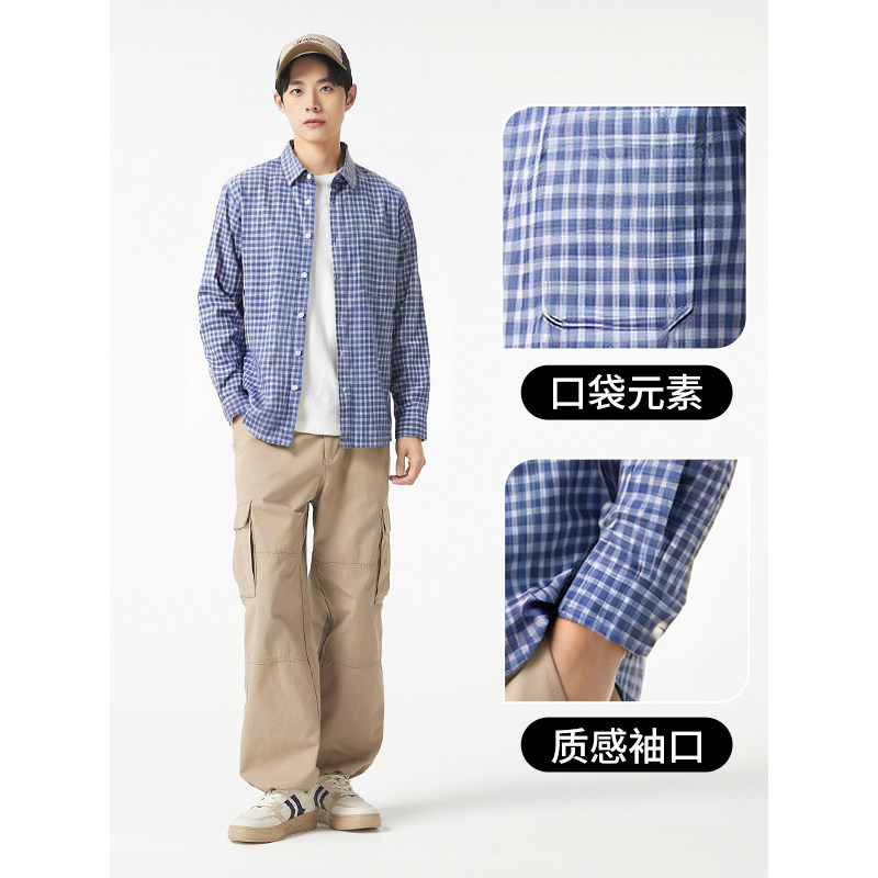 牛仔衬衣01045113 纯棉小熊刺绣长袖 佐丹奴牛仔衬衫 男2026年春新款