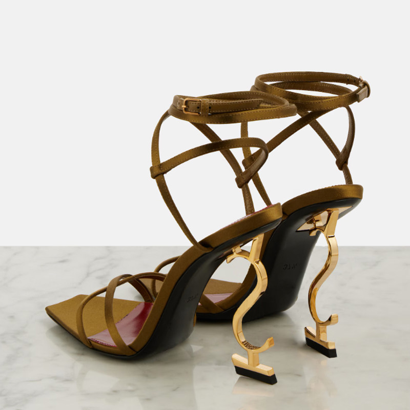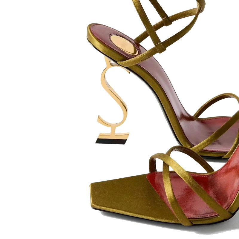 超高跟露趾方头一字带字母高级感名媛气质女凉鞋 欧美2025春季 新款