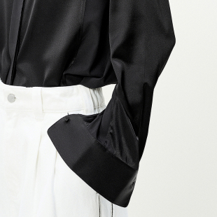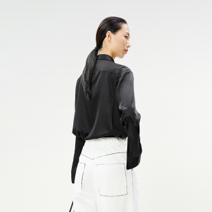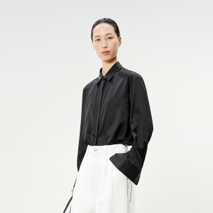 女职场通勤黑长袖 LESS桑蚕丝拼接衬衫 衬衣2P2211570 精工系列