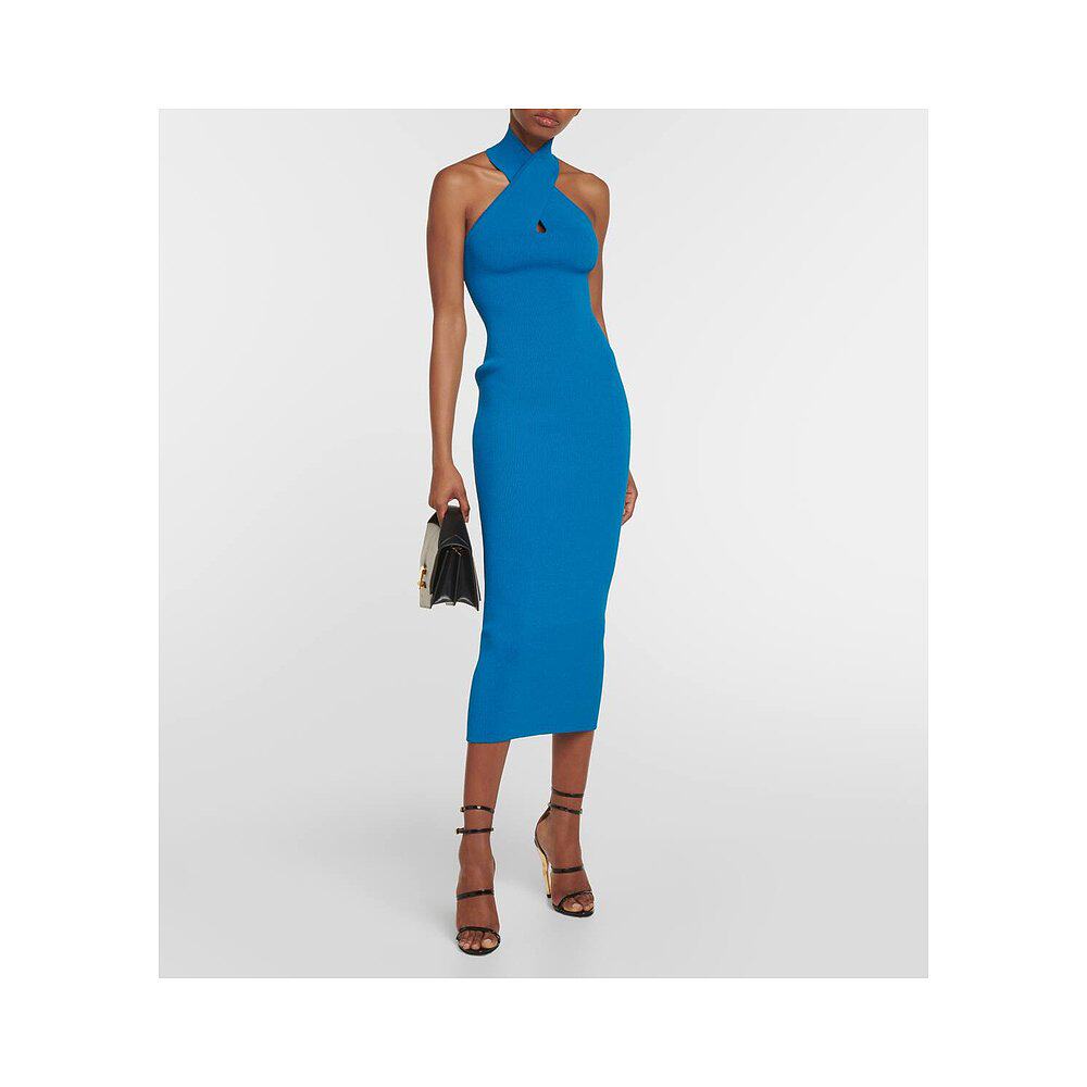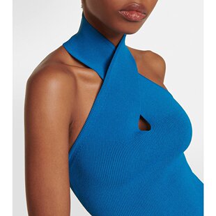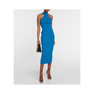 blue蓝色 1h可退 挂脖合身剪裁中长连衣裙 女士 舒 香港直邮Alaia
