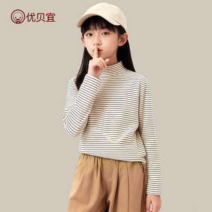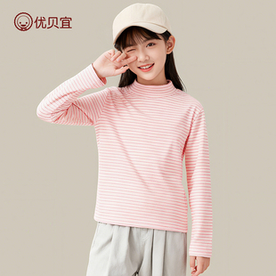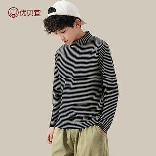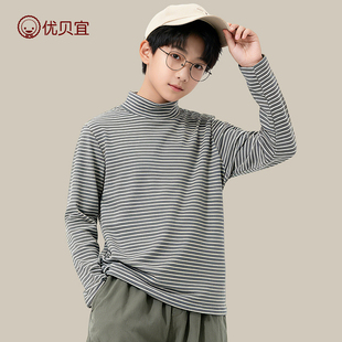 优贝宜男童打底衫 t恤秋中高领儿童秋衣单件德绒上衣 保暖条纹长袖