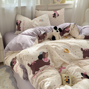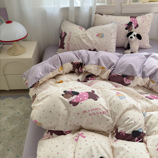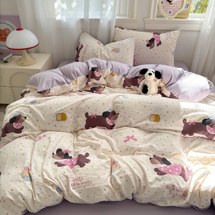 A类床上四件套纯棉全棉冬季 床品床单床笠学生宿舍床品被套三件套4