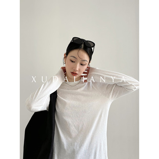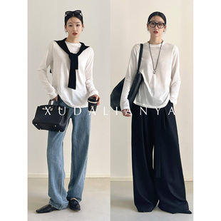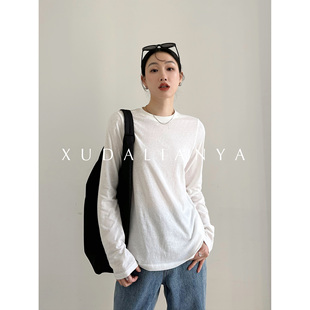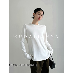白色T恤女 宽松长袖 徐大脸吖定制 干爽凉爽新疆棉tee上衣春基础款