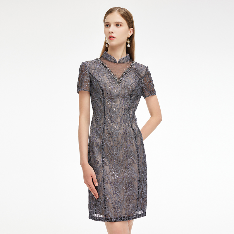 专柜正品 蕾丝钉珠旗袍裙连衣裙子礼裙MRA112DRX0 马天奴秋冬新款