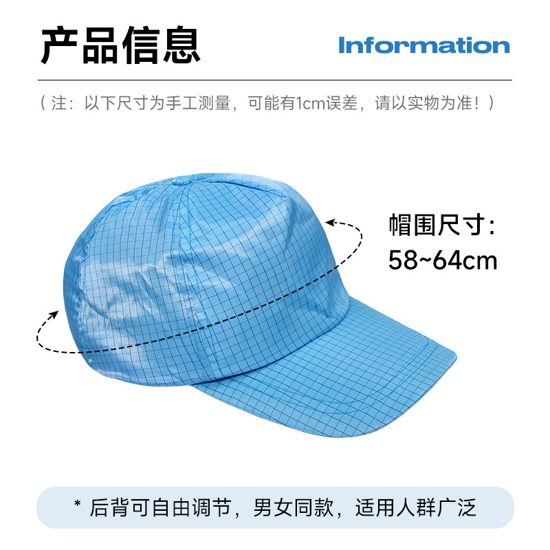 工作帽子可调节男女防尘防静电太阳帽食品电子厂车间流水线鸭舌帽