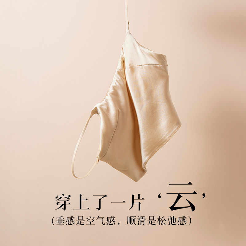 徐凰双面真丝带胸垫小胸吊带文胸抹胸一体式 防走光蚕丝美背内衣夏