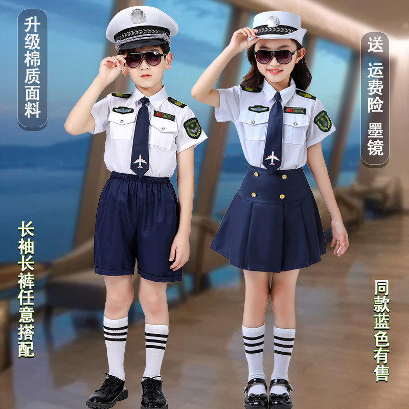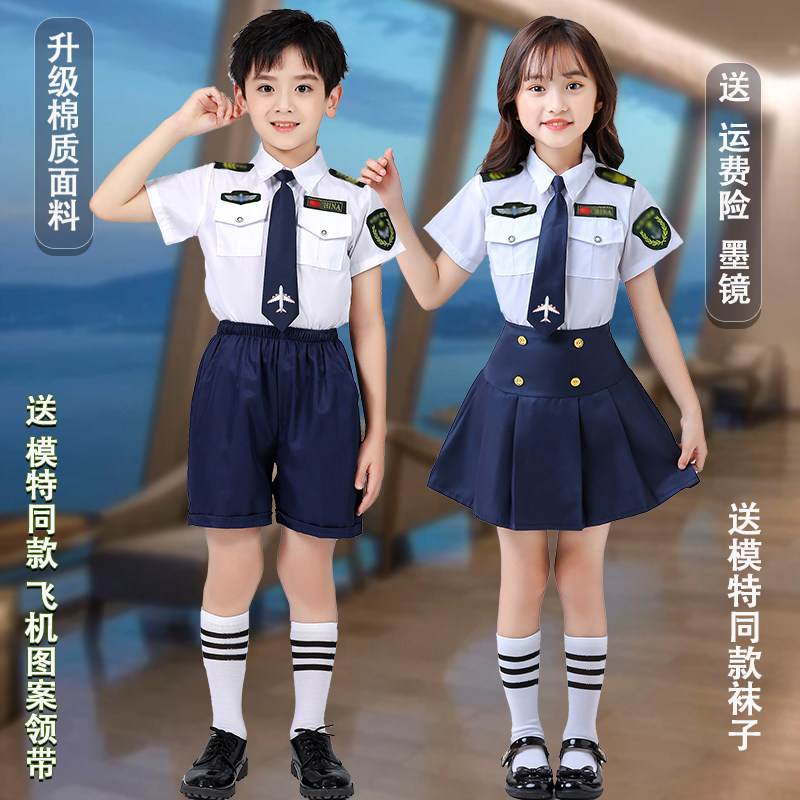 儿童机长制服男空姐乘服装 演出表演出角色扮演舞蹈服 女飞行员套装