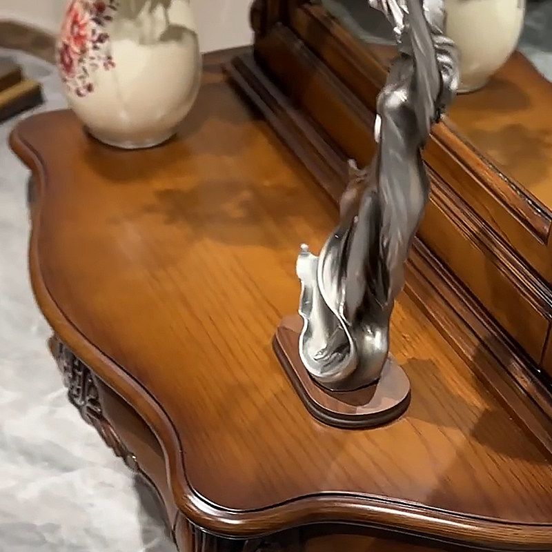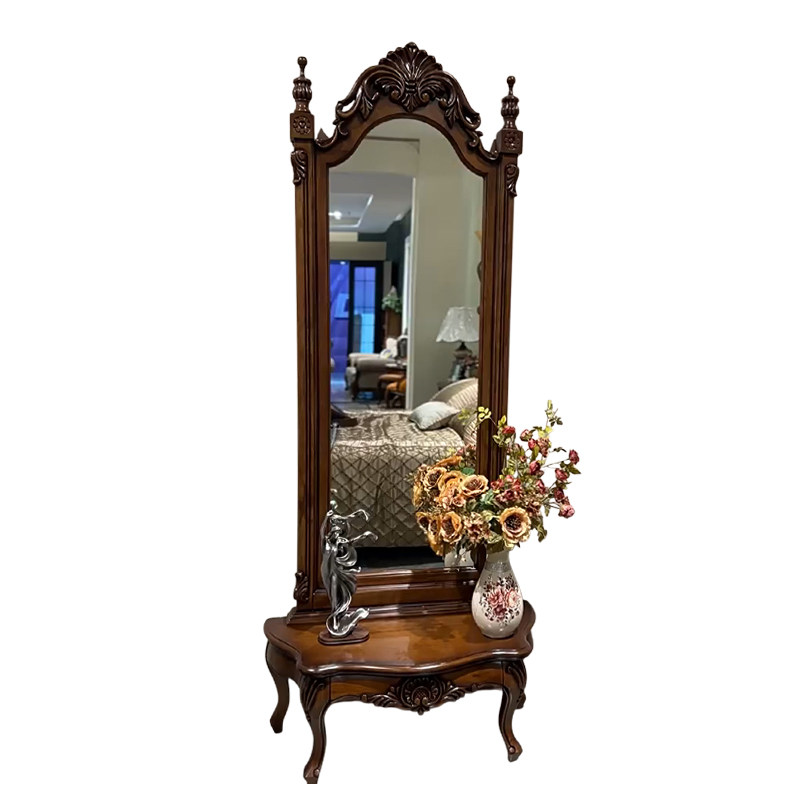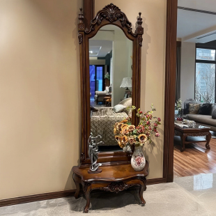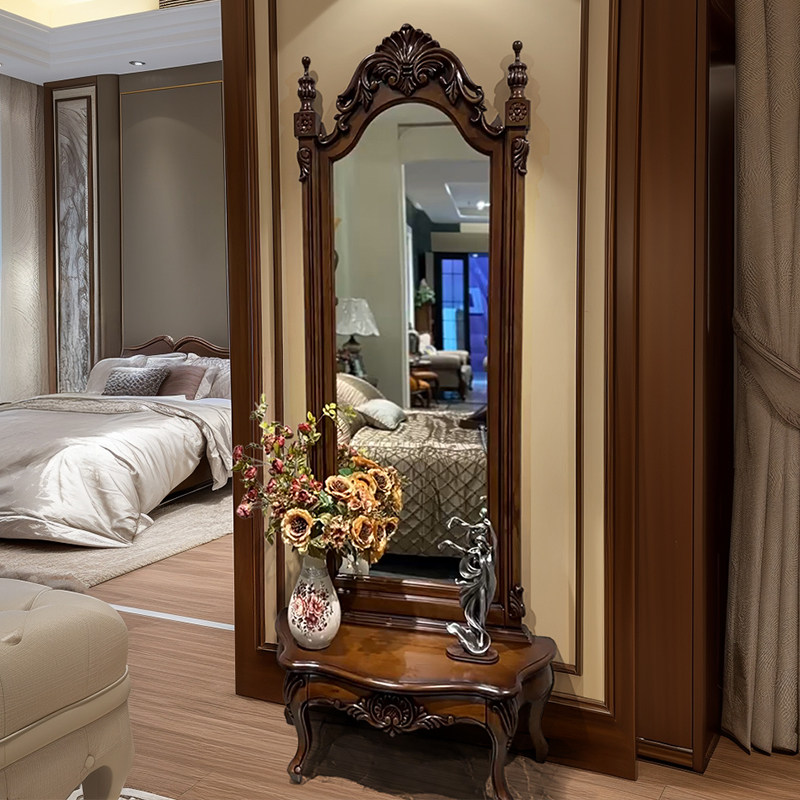 美式 公主高档衣帽间雕花试衣镜家用立体全身落地镜 实木穿衣镜欧式