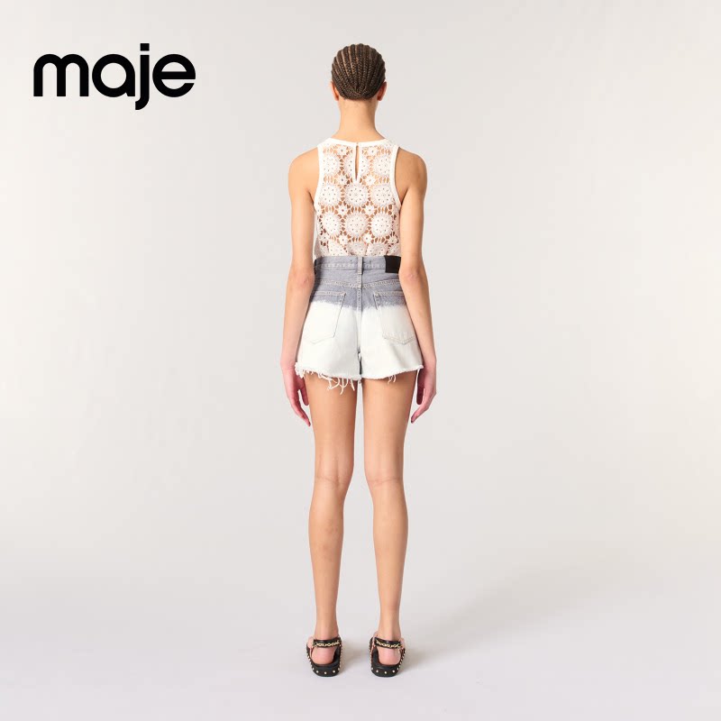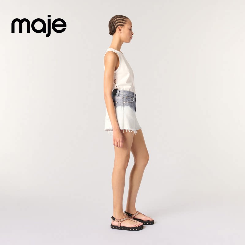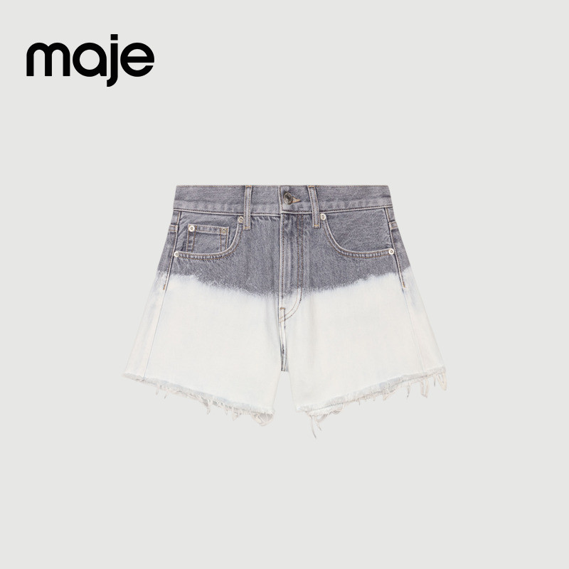 腿设计牛仔高腰廓形短裤 Maje2025春夏女装 褪色扎染毛边裤 时尚 法式