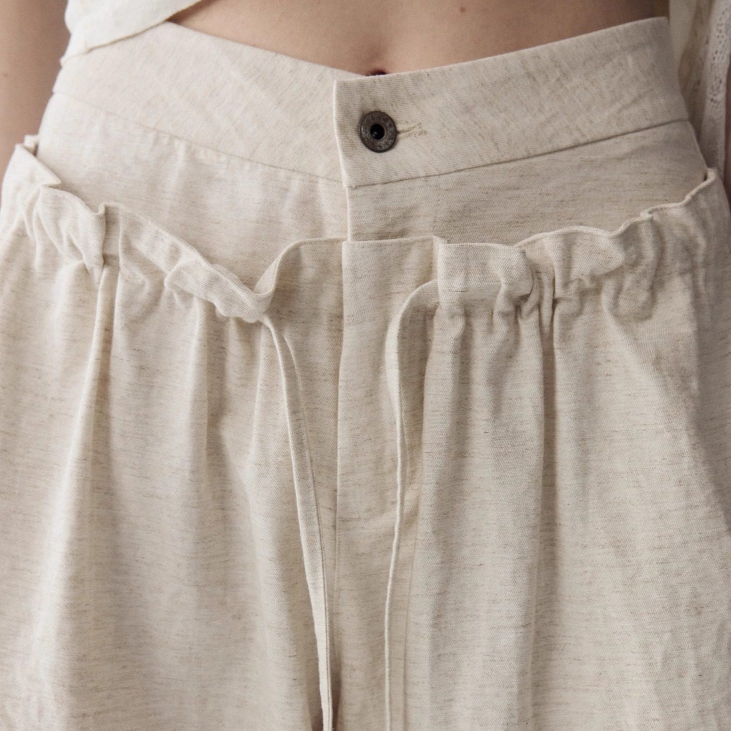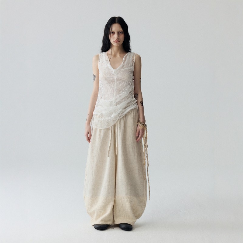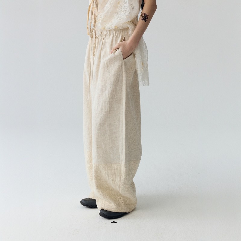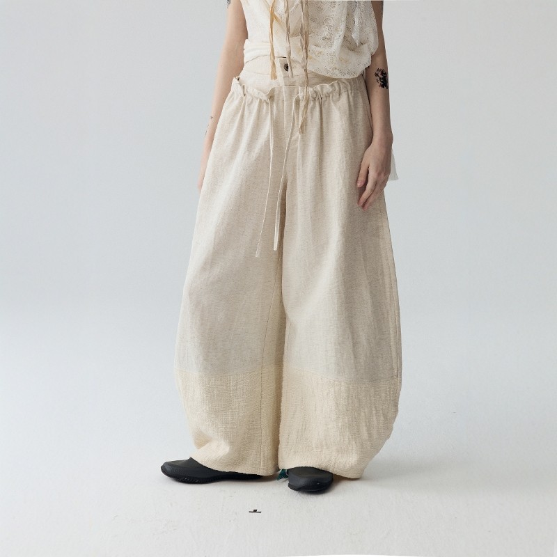 VINZOO 原创双腰头拼接褶皱休闲抽绳宽松气球阔腿裤