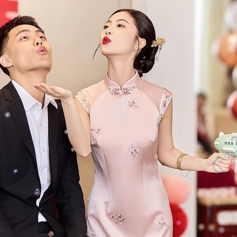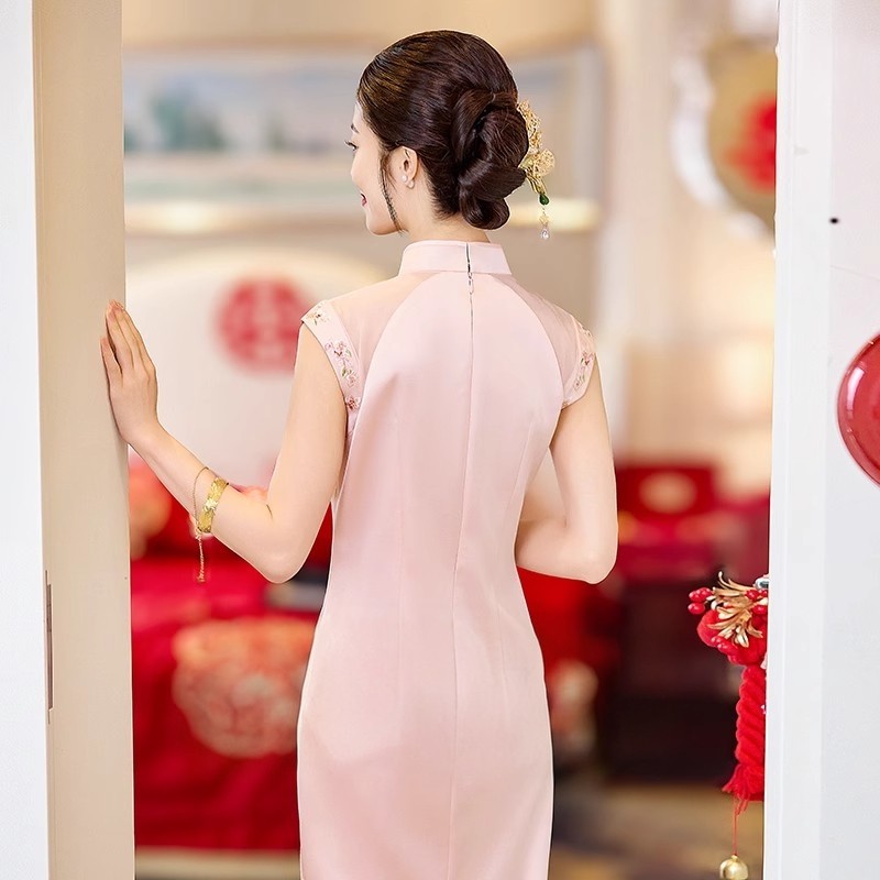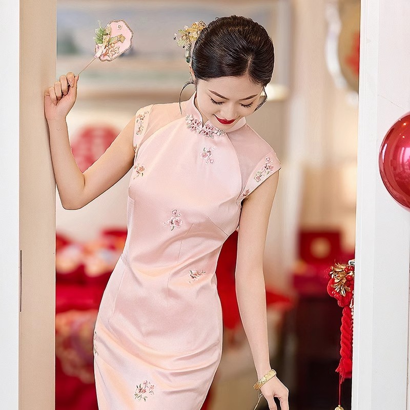 气质新娘敬酒服 粉色旗袍女订婚礼服连衣裙2025夏新款 桃染 新中式