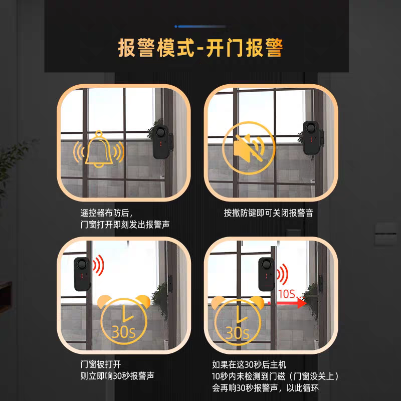 遥控家用门窗防盗报警器门磁防贼小偷开关房门窗户开门提醒出租房