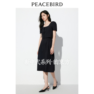 太平鸟新中式 秒杀 方领国风连衣裙气质提花盘扣裙子 断码
