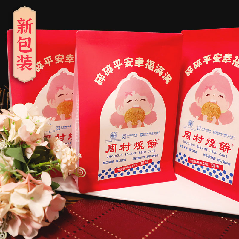周村烧饼山东特产香酥芝麻饼咸7袋健康零食甜淄博小吃 官旗