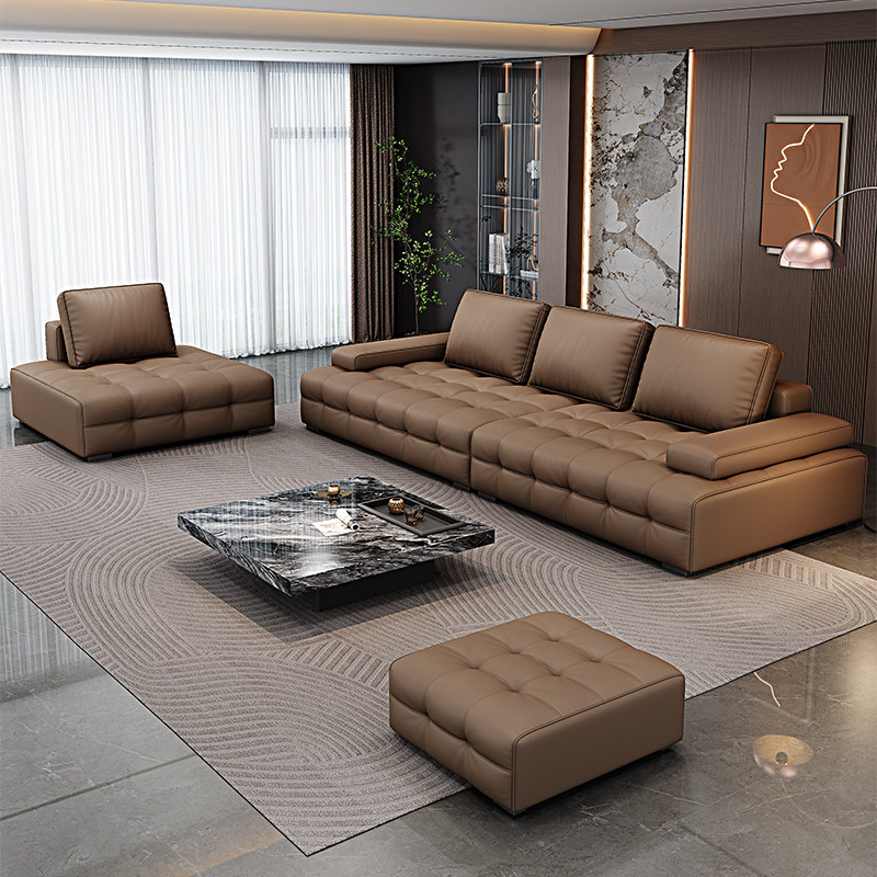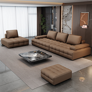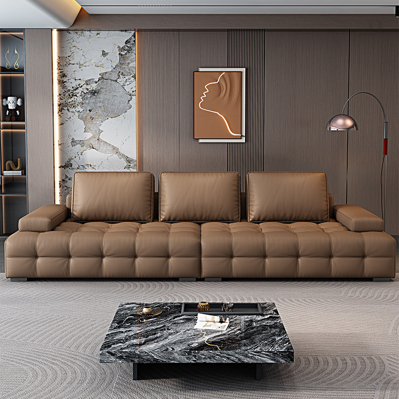 凯佑新款 轻奢直排皮沙发 小户型组合皮沙发客厅家用劳伦斯沙发意式