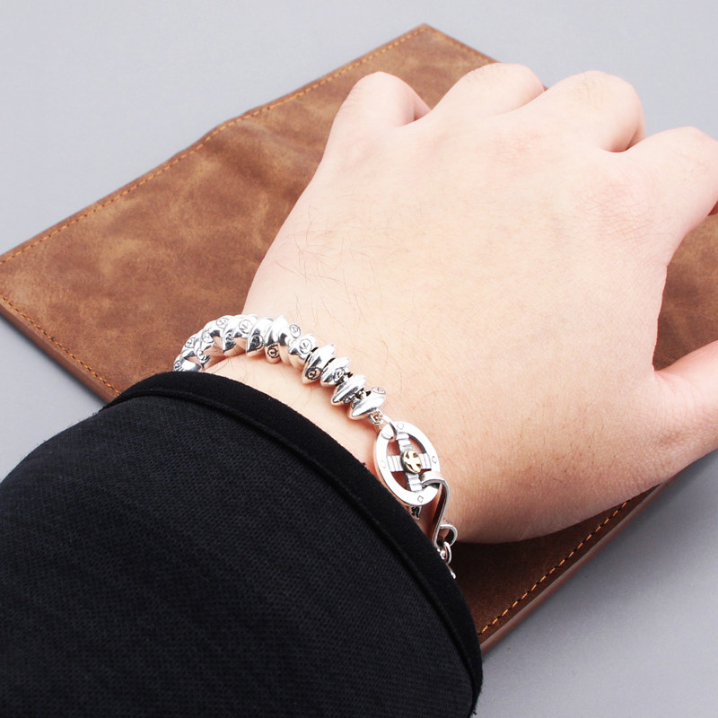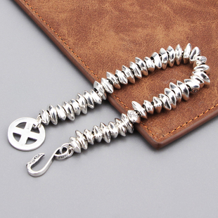 s925纯银饰复古个性 创意百搭高桥飞鹰珠子手链潮流男女朋克风做旧