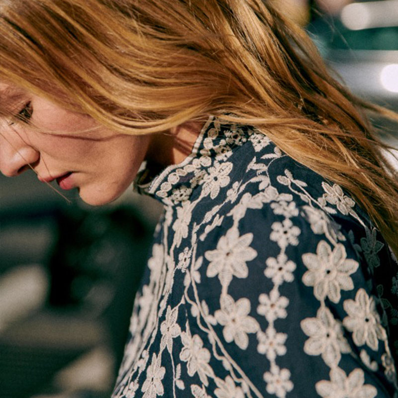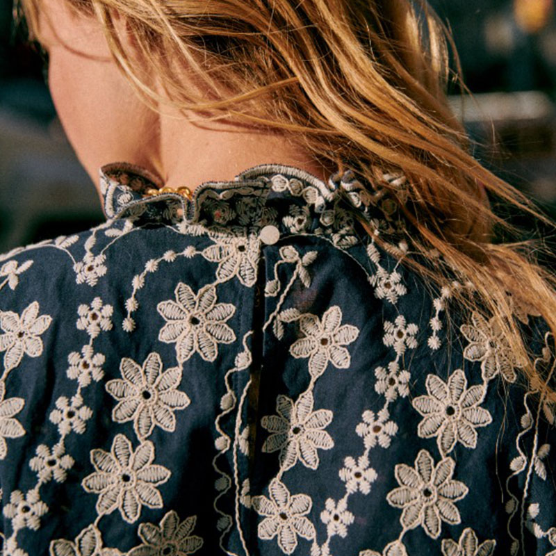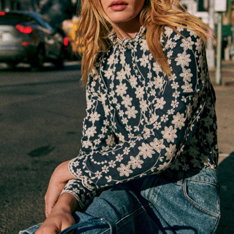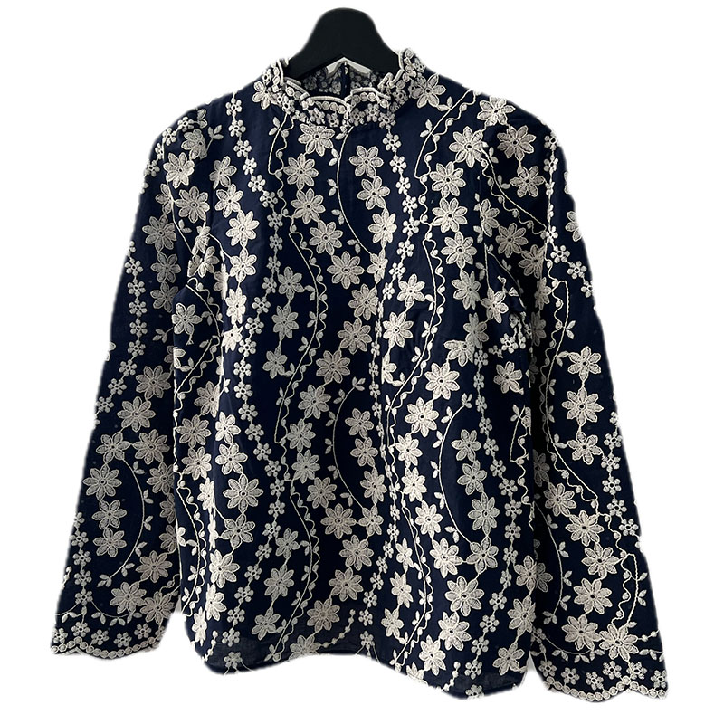 气质衬衫 现货法式 小众23年复古少女蕾丝花朵纯棉刺绣花瓣立领长袖