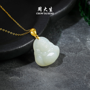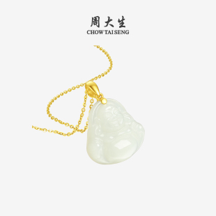 周大生黄金和田玉吊坠男女佛公足金笑佛情侣款 项链挂坠生日礼物