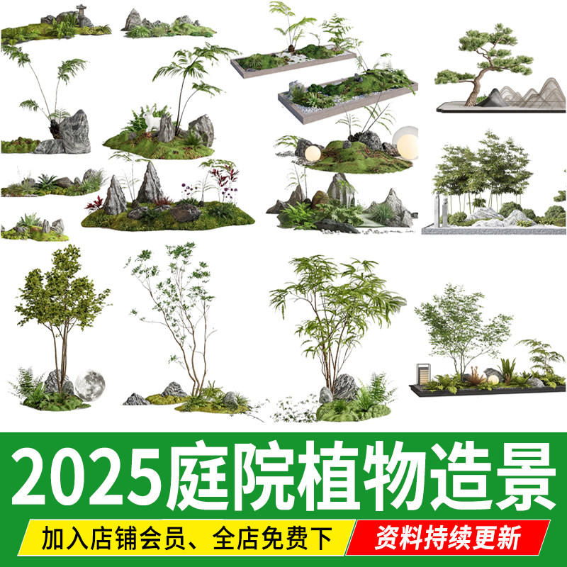 庭院植物组团造景小品园林景观中式 ps效果图后期psd免扣素材 花园